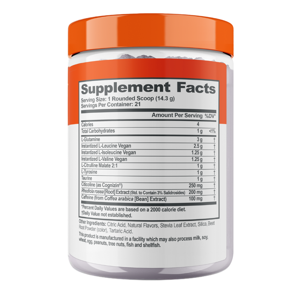 GENIUS BCAA is the smarter way to refuel your body and mind. Premium vegan amino acids, nootropics, and adaptogens pack the formula that makes BCAA good for supporting recovery and elevating both mental and physical performance. It helps support muscle repair, reduce soreness, boost endurance, and enhance focus—all in one clean blend. Featuring InstAminos® fermented BCAAs, Rhodiola Rosea, Taurine, and Cognizin® Citicoline, Genius BCAA provides sustained energy, sharpens mental clarity, and accelerates recovery after every workout*.