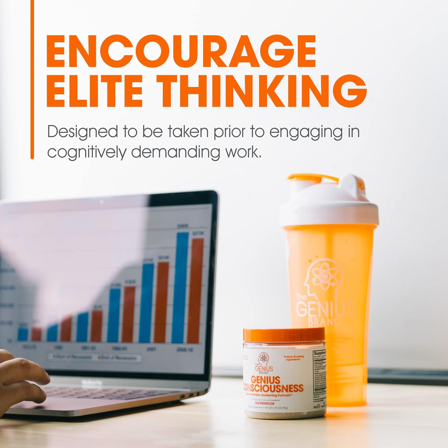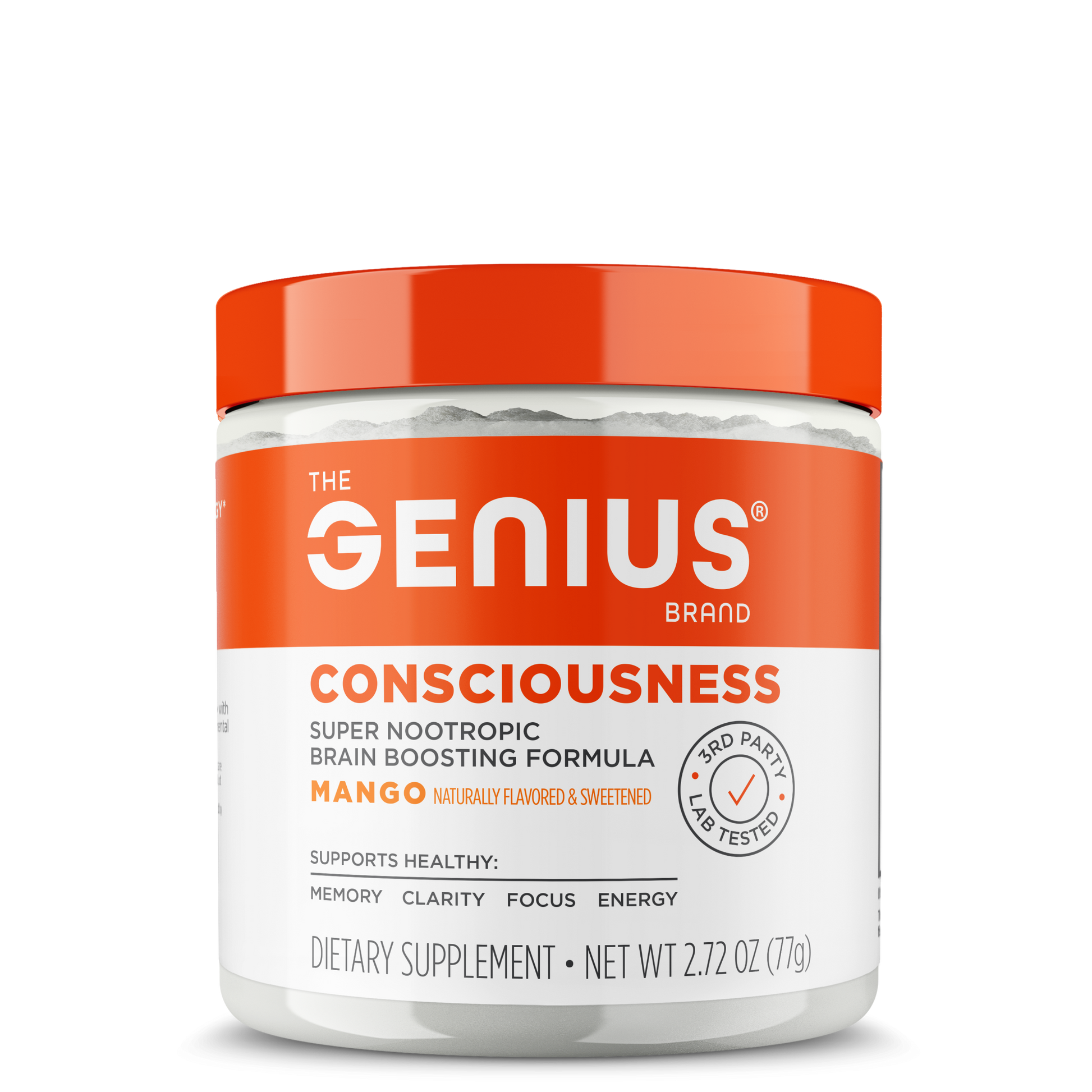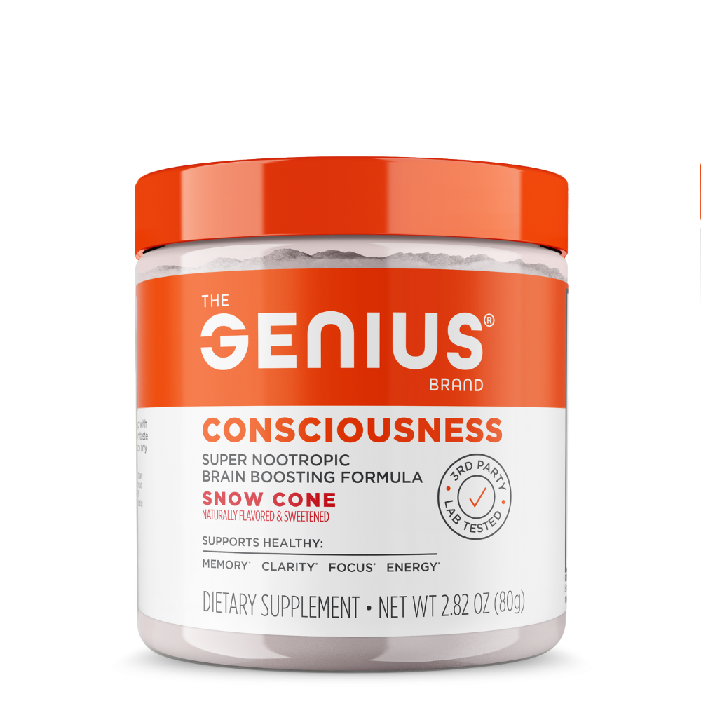 Genius Consciousness is a premium cognitive enhancer designed to support sharp focus, clear thinking, and sustained energy. Clinically researched ingredients, including AlphaSize®, SerinAid®, NeuroFactor®, Dynamine®, and Lion’s Mane, work together to help improve memory, learning, recall, mood, and overall mental agility*. Whether tackling demanding work or training your brain, Genius Consciousness helps you stay alert, sharp, and productive*.